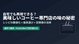 美味しいコーヒー専門店の味の秘密と、自宅で再現するための淹れ方・器具選びを専門店員の視点で丁寧に解説。楽天&定期便(PostCoffee)の活用術も紹介。